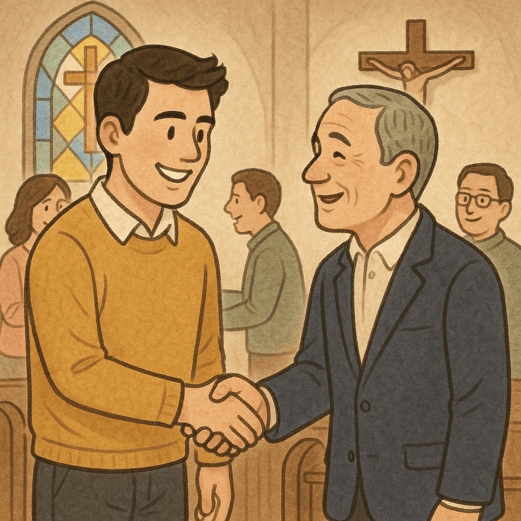 | 헌금 시간이 너무 부담스러웠어요. 꼭 내야 하는 건지... | 모두가 '평화의 인사'를 나누는 시간. 낯선 사람과도 따뜻한 인사를 주고받으며 공동체의 일원이 된 기분이었어요. |
