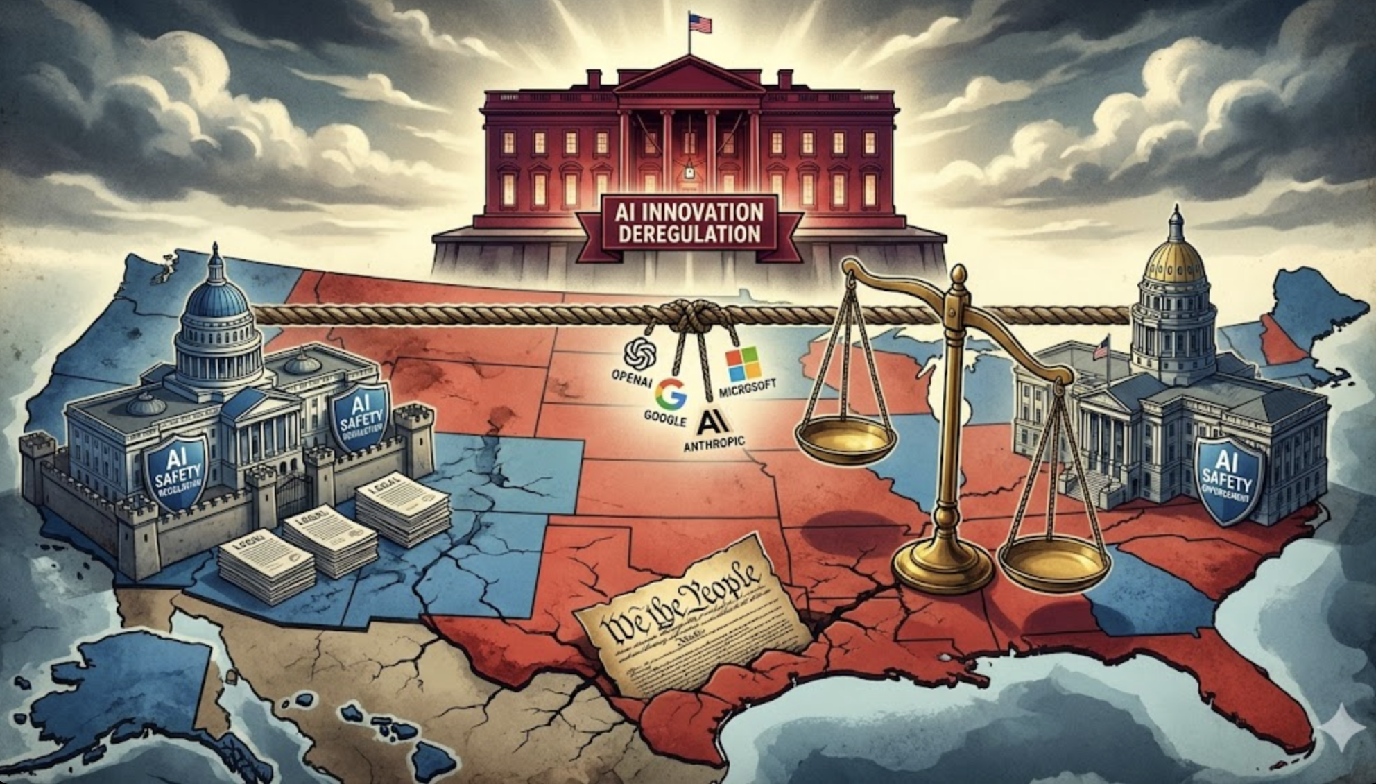 AI 규제를 둘러싼 미국의 연방-주 갈등이 2026년에도 계속되고 있습니다. 트럼프 행정부는 "AI 혁신을 막는 규제"를 철폐하는 방향으로 연방 정책을 가고 있지만, 캘리포니아·콜로라도 등 주(State) 정부들은 독자적인 AI 규제 법안을 추진하고 있습니다. 글로벌 AI 기업들은 이 복잡한 규제 환경을 어떻게 헤쳐나가야 할까요?